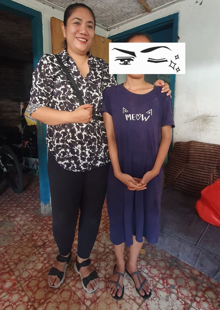 Mengunjungi memberi semangat dan memberikan paket sembako kepada seorang perempuan yang mengalami sakit tumor di wajah.