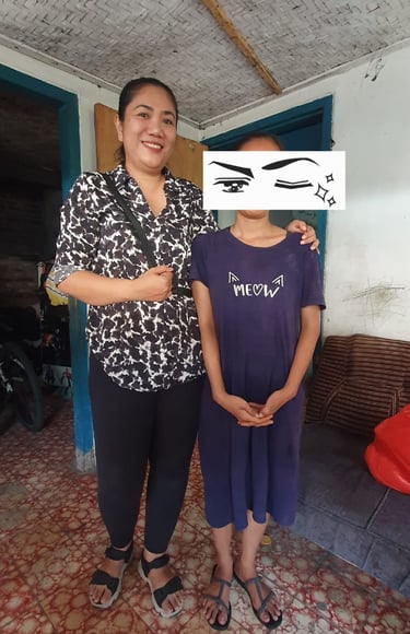 Mengunjungi memberi semangat dan memberikan paket sembako kepada seorang perempuan yang mengalami sakit tumor di wajah.